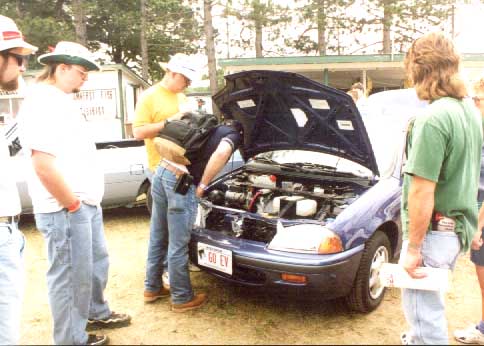 Another car at the fair was the hybrid vehicle being developed at the University of Wisconsin, known as the "aluminum cow". Also covered in decals, it brought a lot of attention.