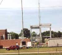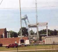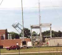 As the charge started, I walked back to the garage entrance and started talking to one of the linemen, who pointed to a large blue water tower a couple of blocks away and told me it was going to be "dropped" in about a half hour. It was obsolete and was going to be scrapped; I got there just in time to watch it. I missed some of the charging data but got some great photos of the tower going down: