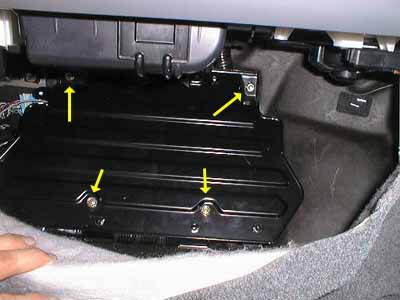 The second big gotcha in the installation was finding the VSS (Vehicle Speed Sensor) wire. The instructions say it's pin #5 of the 31-pin blue connector in the floor of the car. Oh---kayyy.... After about 45 minutes of looking, I finally found the connector. I had to peel back the carpeting under the dash on the passenger side and expose the black plate shown in the photo. I removed the 4 nuts holding the plate down and carefully lifted it. There are four cable bundles running to a computer box underneath it, and they don't have a lot of slack! |