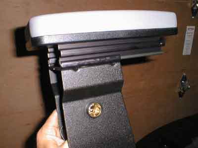 The big issue for the armrest was that it had to be useful for both me (I'm 6' 2" tall and drive with the seat all the way back) and my wife (5' 4" tall, and she drives with the seat almost all the way forward!). The Husco product seemed perfect, because unlike other armrests, it slides forward and backward to accommodate different drivers. The first job was to locate the armrest on the handbrake cover between the seats, and be sure it was in the right position for both drivers. Once I had it in the proper position, I used a Sharpie pen to mark the location of one of the mounting holes on the handbrake cover.