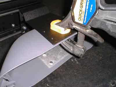 Here's how the clamped cover and bracket looked on the second side. Note the metal plate in place on the other side. The clamp made this part of the job a breeze. |