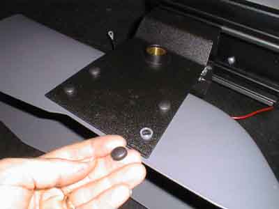 Once all the holes are drilled, put the metal backup plate in place and insert the hardware as instructed. These net little black plastic caps snap in place and give the unit a pretty nice final appearance! |